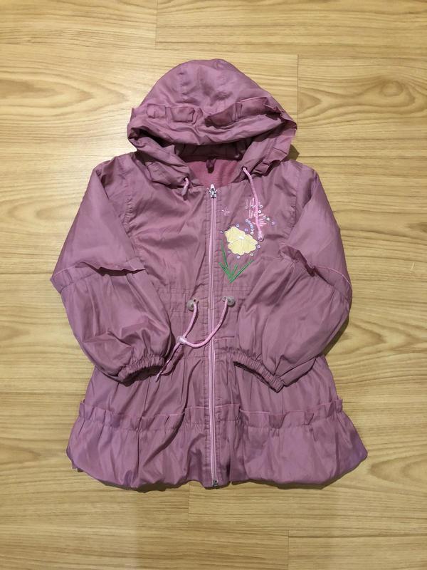 Плащ с цветочком на девочку, утеплен флисом, теплый, легкий, прекрасно подойдет на весну-осень. Есть два кармана, капюшон не отстегивается. Замеры плаща: ширина плеч 31 см, полуобхват груди 36 см, полуобхват талии 33 см, полуобхват бедер 40 см, ширина по низу 48 см, длина плаща 58 см, длина рукава от плеча 38 см, от горловины 46 см. Подойдет на 2-4 года. Состояние очень хорошее, есть зашитость на правом рукаве.