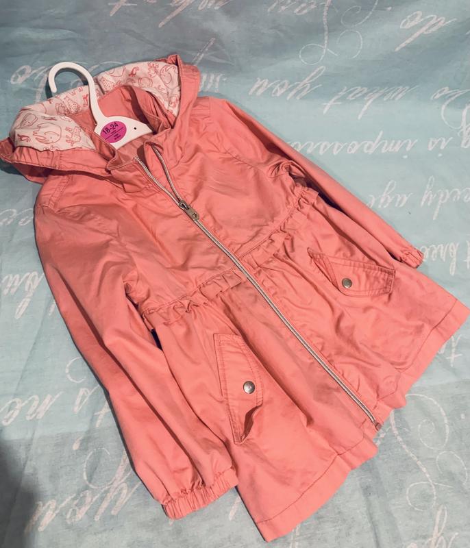 Плащик легкий на девочку до 98 г. Состояние отличное, имеет подкладку, качество шикарное. Сверху ткань - плотный коттон.