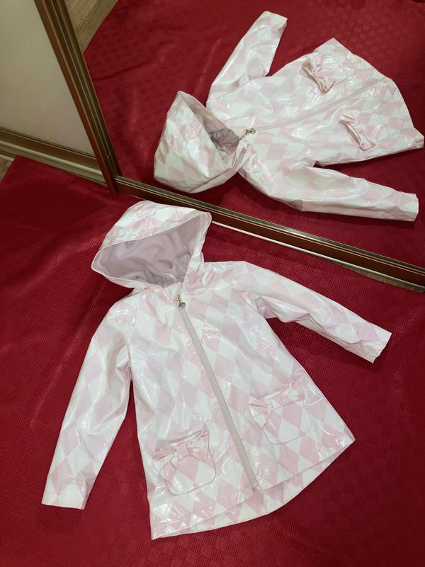 Куртка плащ дождевик, совсем не промокает, размер 98 см, 3 рочки, но и на 4 будет! Внутри флиска. Очень круто и стильно смотрится. Замеры: длина 50 см, в груди 33 см, рукав 37 см. Бренд C&A. Секонд