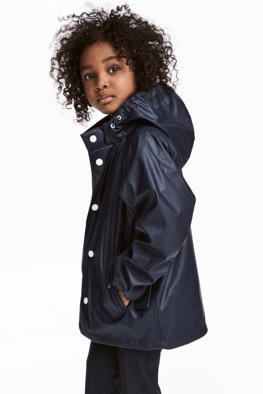 Дождевик из непродуваемого и водонепроницаемого функционального материала с проклееными швами. На куртке отстегивающийся капюшон с резинками по бокам. Кнопки спереди и боковые карманы с клапанами на потайной кнопке. Без подкладки. Поверхность куртки обработана водоотталкивающим составом без вредных фторуглеродов. Подойдет как для девочки, так и для мальчика. Размер eur 122/128. Новый, повреждена внутренняя бирка.