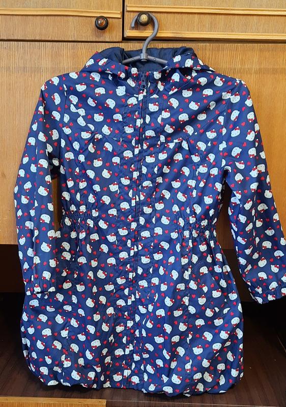 # 23 Плащ для девочки. На резинке на поясе и снизу. С карманами. Состояние удовлетворительно. Эффекты на последних фото ( едва заметные пятна спереди и на рукаве, не критичны). На 6-8 лет, рост 120-130 см. Ширина плечей 34 см Ширина груди 42 см Ширина поясу 35 см ( резинка) Длина рукава 45 см Длина 68 см.