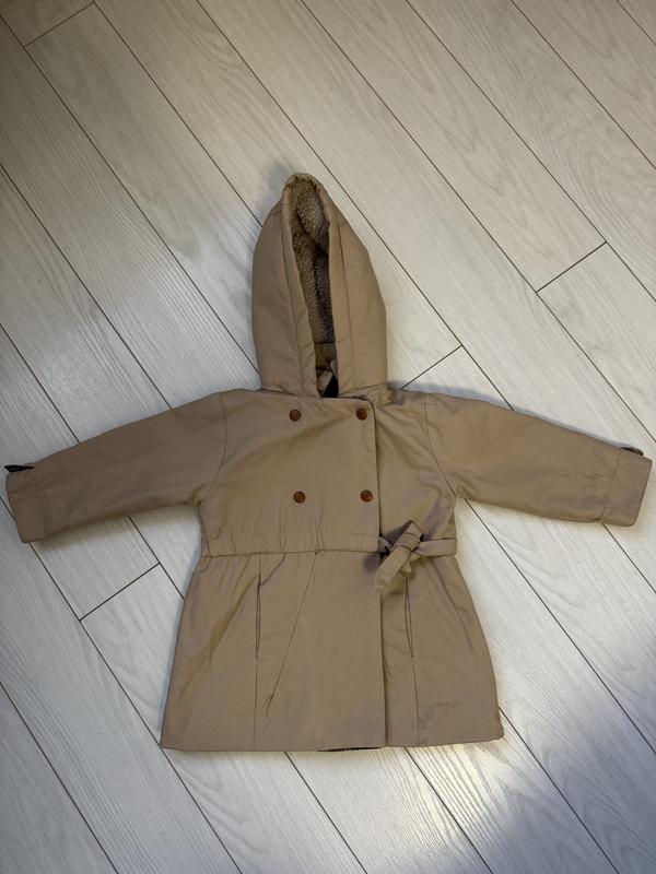 Осенний плащ бежевого цвета,с маленьким недостатком (см.фото 5) Размер 92 см. 18-24 мес.