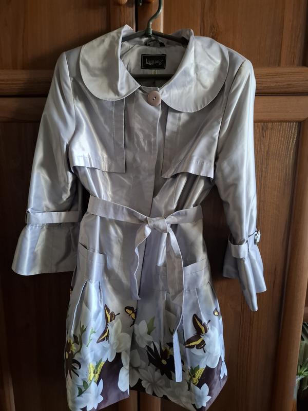 Продам плащ серебристого цвета с цветочным принцем.