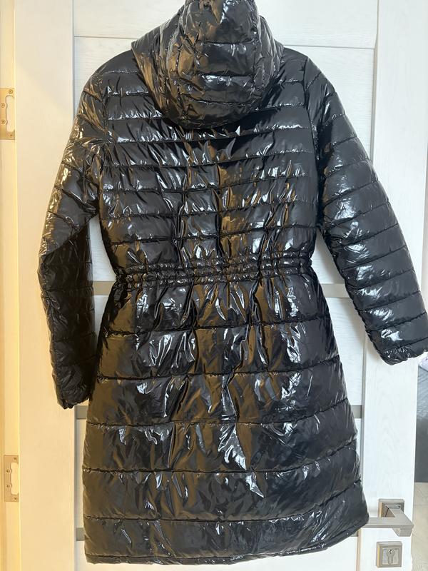 Плащ на подкладке, на тонком синтепоне, лаковый. Размер 164см, можно на xs-s. В талии регулируется. Новый!