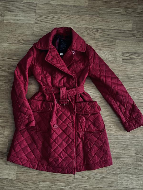 Крутезний стьоганий плащ на весну осінь на тонкому стнтепоні, колір винний, заміри: довжина 70, рукав 48, плечі 31, пог 38, пот 35, поб 43. Носили на 7-9 років. Одягнене на 146 ( мале на доньку), підійде до 140