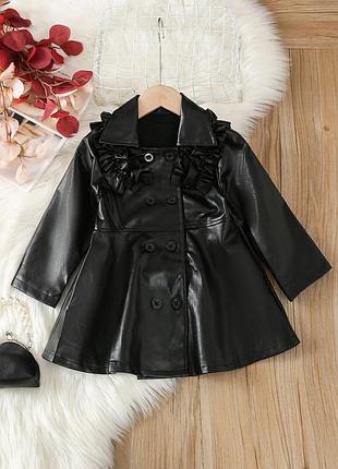 В наявності✅✅✅ Стильний тренч з екошкіри для дівчинки Матеріал-м‘яка екошкіра на текстилі Застібається на ґудзики Дуже стильний та якісний Гарно сидить на дітках 90 - довжина 44 см, пог 29 см, рукав 31 (4 шт) 100 - довжина 47 см, пог 31 см, рукав 34 см (3 шт) 110 - довжина 51 см, пог 32 см, рукав 37 см (3 см) 120 - довжина 54 см, пог 33 см, рукав 39 см (3 см) 130 - довжина 57 см, пог 35 см, рукав 43 см (4 см) Замір рукава від плеча А