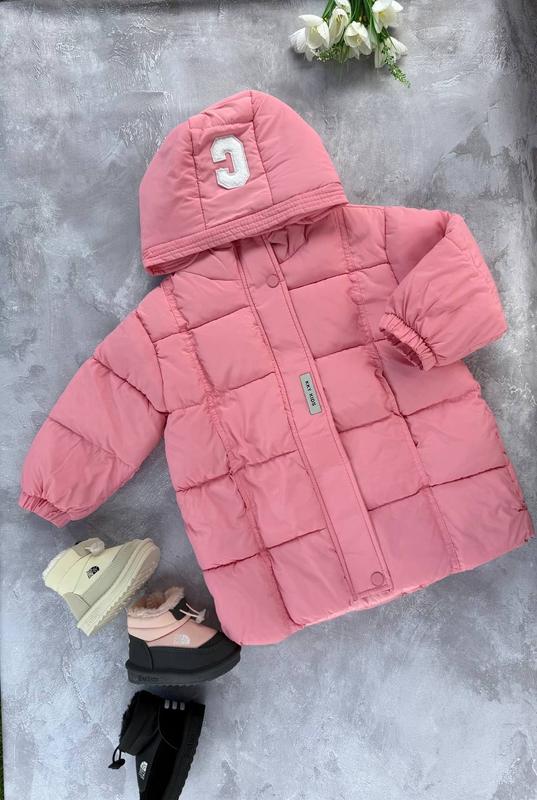 Детский теплый плащ удлиненная куртка на синтепоне не промокает с капюшоном на молнии