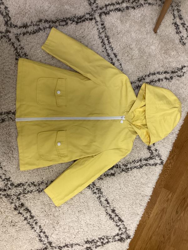 Яскравий плащ-куртка в дощову і вітряну погоду для дівчинки. Має накладні кишені+капюшон. Довжина рукава 41,5 см. Довжина виробу по спині 53 см.
