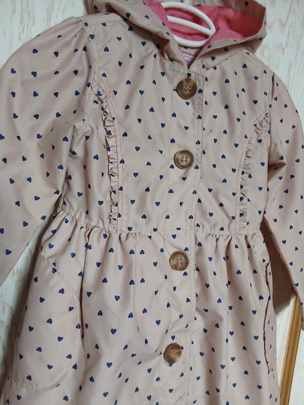 Дуже стильний плащик, для дівчинки 4-5 роки. Довжина 55 см, плечі 28 см, рукав 39 см, ПОГ 35 см.