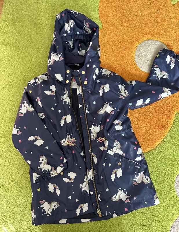 плащик H&M, для дівчинки на зріст 122 см, з затяжками на поясі, з кишенями, капішон відстібається.