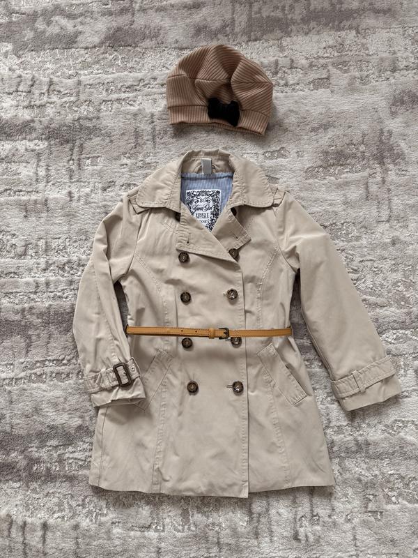 Тренч від зари для дівчинки, 4-5 років, берет додається. Стан тренча дуже гарний, пасочок можна замінити.