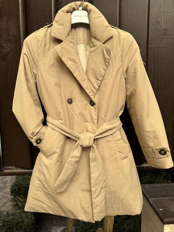 Чудовий у тренч на тонкому утеплювачу,невагомий і приємний до тіла.Колір пісочний,ношений дуже мало,без нюансів Довжина по спині 69,підмишки 46,рукав від горловини 58,5 Від плеча 46