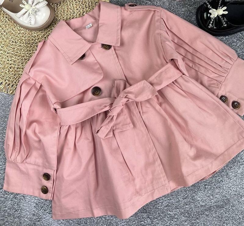 Матеріал-котон Підкладка -нейлон Застібається на ґудзики В комплекті йде з поясом Дуже стильний та якісний 80/6 - довжина 39 см, шир 28 см, рукав 35 см 90/8 - довжина 42 см, шир 30 см, рукав 37 см 100/10 - довжина 44 см, шир 32 см, рукав 40 см Замір рукава від горловини