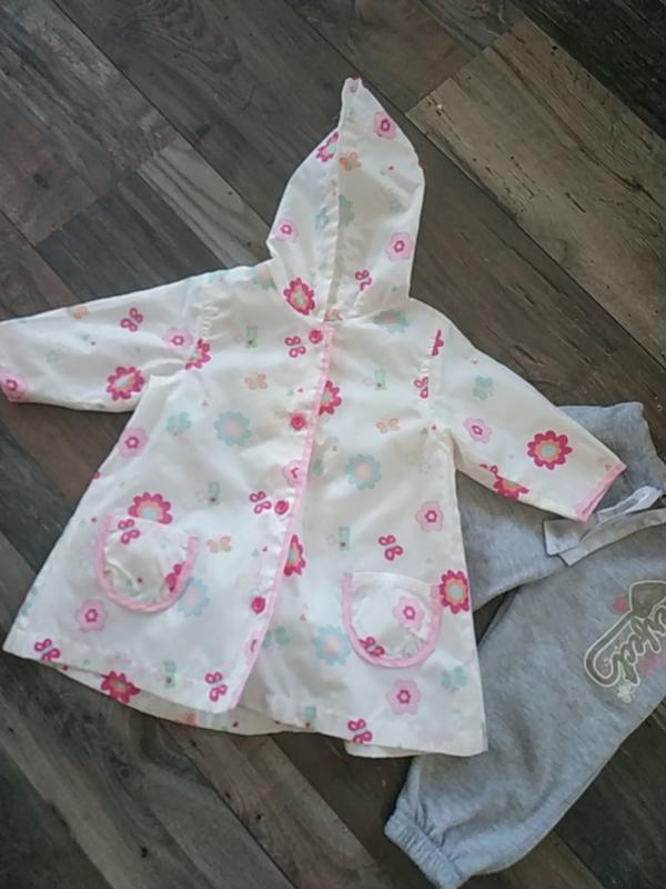 милый плащик с капюшоном,штаны в подарок 9-12 мес.