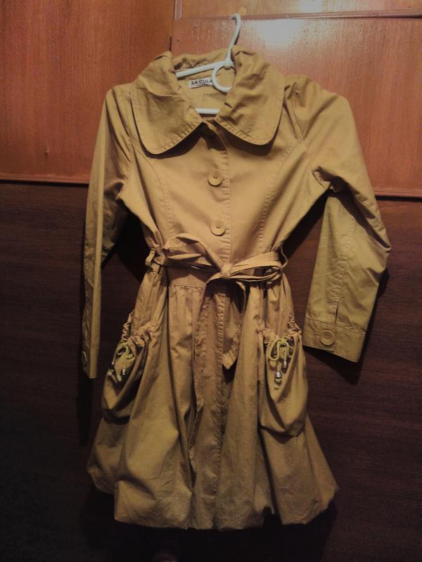 Гірчичного кольору,в хорошому стані. Заміри: довжина 75см,ширина плеч34,5см,ширина під руками 41см,довжина рукава від горловини 59см,пояс 37см.