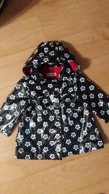 Дуже красивий і стильний плащ на дівчинку 12-18 міс. Носили ми залишилися дуже задоволені. Всередині червоний фліс.
