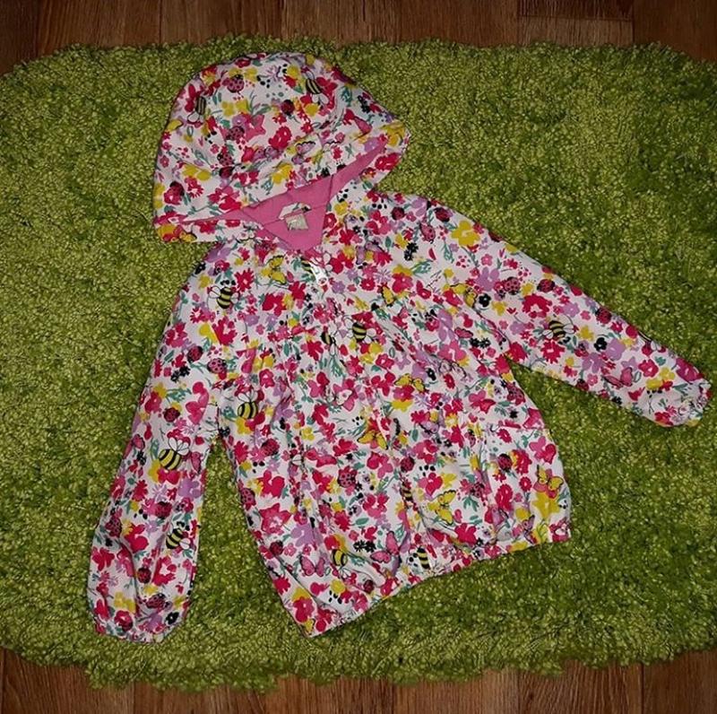 Яркая ветровка-дождевик фирмы TU. Размер 1,6-2 года на рост 92 см. Состояние идеальное,без малейших нюансов. Сезон:тёплая весна-осень и прохладное лето. Защитит от ветра и дождя. Снаружи водоотталкивающая ткань,подкладка коттот + нейлон. Замеры: Длина от плеча до низа 40 см Ширина под ручками 35 см Рукав от плеча 33,5 см Плечи 27 см