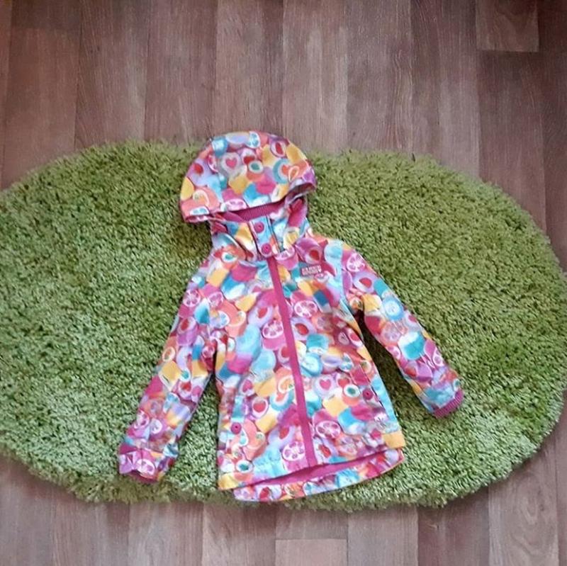 Шикарная яркая качественная ветровка на флисе фирмы Next для девочки. Размер указан 2-3 года, на рост 98 см,большемерит! Сезон:теплая осень-весна. Защищает от ветра и легкого дождя. Снаружи водоотталкивающая ткань, подкладка флис. Застёгивается высоко под шею, есть трикотажный воротник,чтоб не задувал ветер и не натирало шею,есть трикотажные манжеты. Сзади немного удлинена. Состояние отличное, без малейших дефектов, без потертостей и зацепок. Замеры: Длина от плеча до низа 43/46 Ширина под ручками 36 Рукав от плеча 33 + манжет 3 см Плечи 29 Есть такая же на размер меньше.