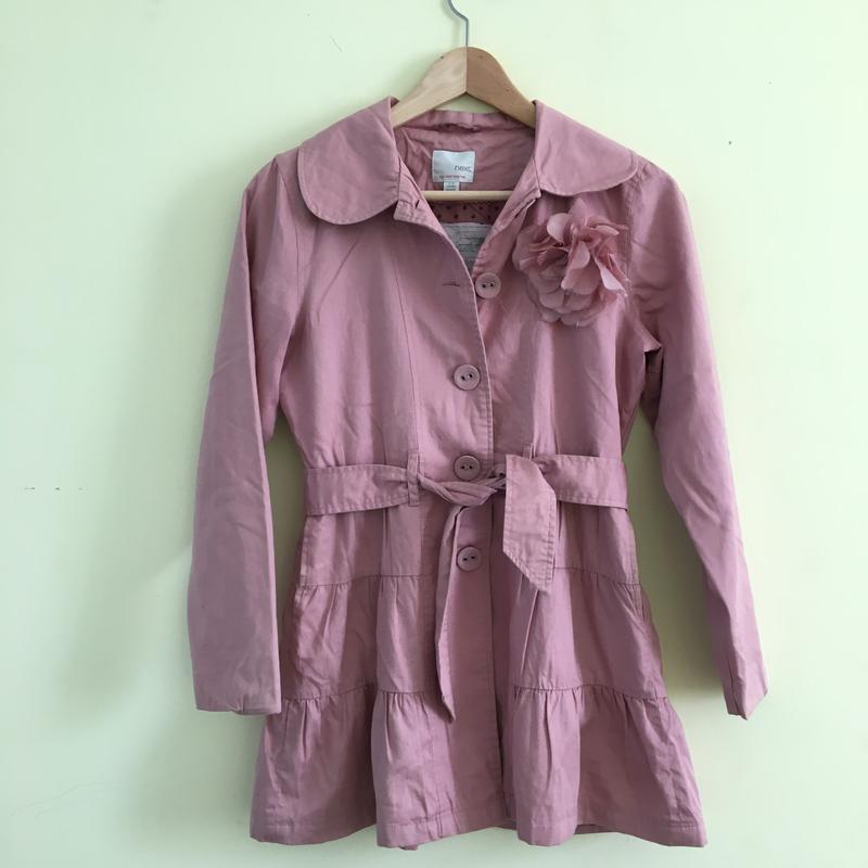 Плащик next , розового коліру , розмір {10-11років} 152 см,квіточка на переді знімається , на теплу осінь-весну