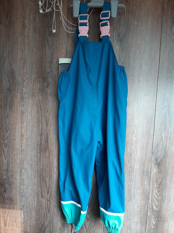 Брюки демисезонные прорезиненный по всему полукомбезу,на поясе регулировка кнопочками с двух сторон. Резинки в идеале, следов носки нет из дефектов сзади точка и нужно пришить шлейку см фото