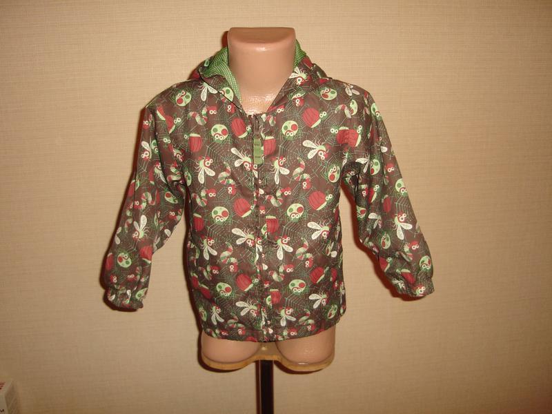 Куртка, ветровка на 1,5-2 года с жучками подкладка-сеточка отличное состояние длина 41, ширина 34, рукав 33 от плеча, от горловины 40 см