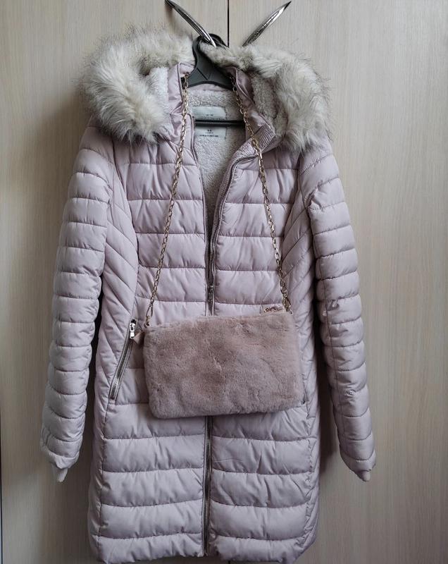 теплий зимовий рожевий плащ з сумочкою, стан чудовий
