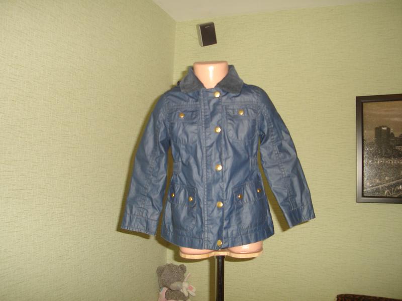 Куртка, ветровка, дождевик F&F на 3-4 года длина 46 см, ширина под руками 32 см, приталенная (ПОТ 29 см) рукав 37,5 см, плечо 8 см, расстояние между плечевыми швами 27 см без утепления, ткань непромокаемая, с пропиткой отличное состояние