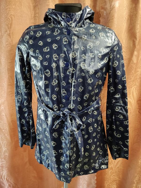 Дощовик підлітковий на дівчинку Hello Kitty. Вітровологозахисний. Чудовий вибір для весняних прогулянок. Розмір 38. Заміри: - довжина 73 - по плечам 41 - по грудям під пахвами 51 - по талії 52 (пояс) - по низу 62 - рукав по внутрішньому шву 46 - рукав від шиї 70 - рукав від плеча 60