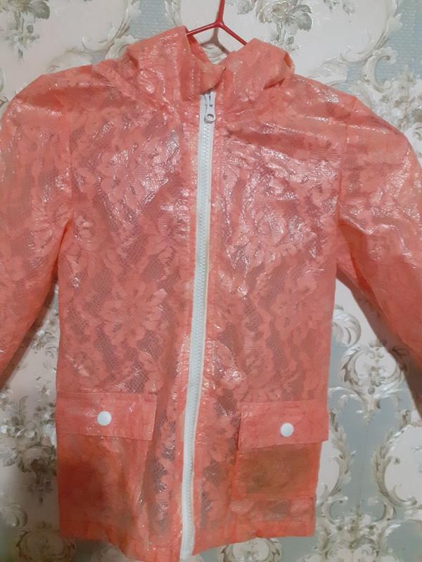 Очень красивый персиковый дождевик ля девочки с карманами снизу кружевный на 116 см)