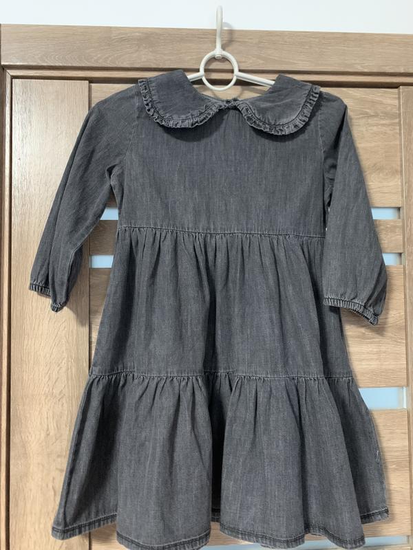 Стильна ярусна сукня денім оздоблена актуальним воротничком. Рукавички на резиночці , спинка затібується на ґудзичок.