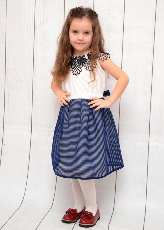 Новий,святковий шкільний сарафан для дівчинки 9-10 років -має мереживний комір і намистинки,замовила через інтернет-не підійшло за розміром. Колір сукні темно - синє. Ззаду є пояс і ще потойной замок на спинці. Довжина - 76 см,ширина під ручками-36 см,талія-33 см .