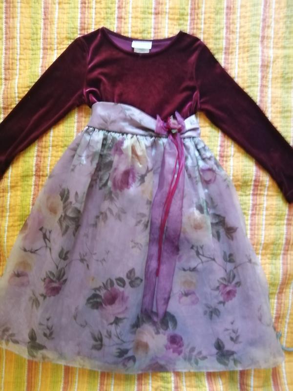 Нарядное платье для принцес 6-7лет. Верх стрейч велюр, низ органза с переливом. Очень нарядно и красиво смотриться на ребенке Замеры.Длинна от плеча 80см. Длинна до талии27см. Длинна юбки53см. Плечи. 29см без натяжки. Рукав от плеча 41см. ПОГ 35-40. ПОТ 28-36см. Отвечу на все вопросы, пересылаю НП, Укр почтою.