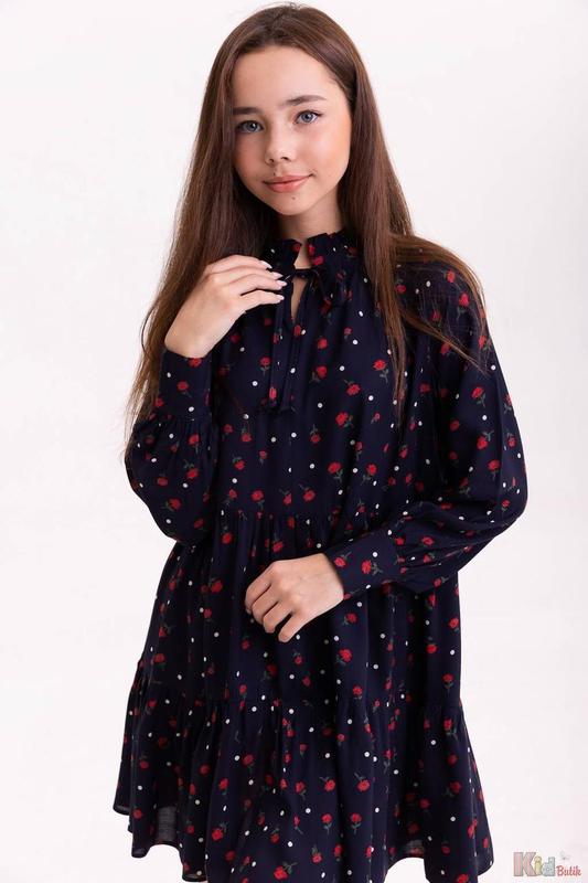 Приймаємо оплату карткою "Пакунок малюка". Платье свободного кроя на длинный рукав. Возле горловины завязки. Модель имеет расклешенный трапециевидный силуэт. Сшито из мягкой ткани с принтом из мелких цветочков. В таком платье Ваша девочка будет выглядеть модно и стильно