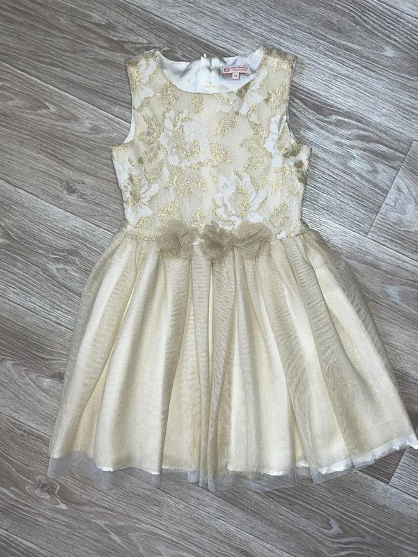 Шикарное платье с блестящим фатином. Юбка пышная из 3-х слоев. Застёжка сзади молния. Состояние нового, без бирки 🏷C&A 8 лет Длина 67(30). ПОГ 33