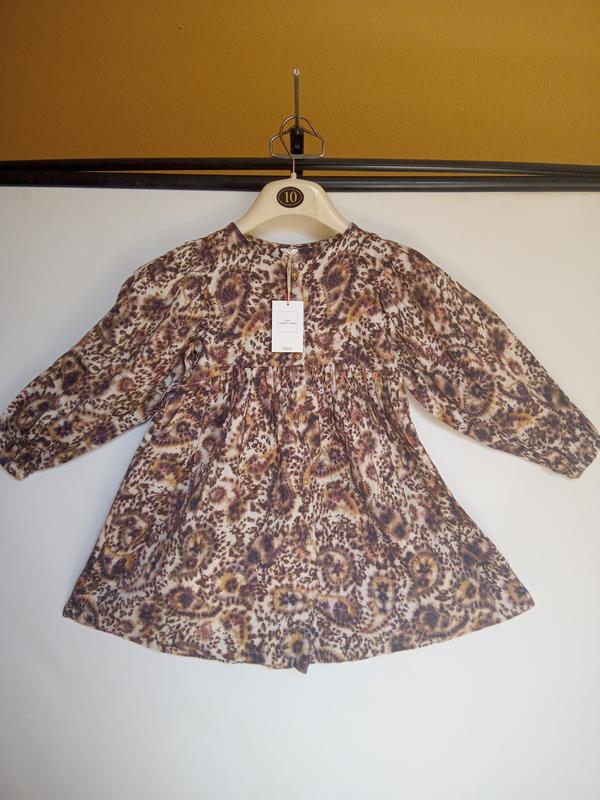 Платье из органического хлопка от Next. Впереди застёгивается на пуговички. Объёмные рукава, слегка завышенная линия талии, манжеты на резинке. На возраст 6-7 лет, рост 122. Новое, с этикеткой. Замеры: ПОГ 32 ПОТ 36 Длина 63,5 Длина рукава 44 Плечо 6 Ширина плеч 28
