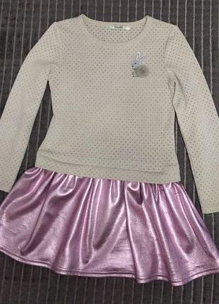 Ткань-верха трикотаж (не плотный),низ плотная ткань Рост 116 см есть небольшой нюанс на юбке Замеры Длина-59 см ширина по груди 31 см,тянется хорошо плечи-28 см Рукав- 43 см