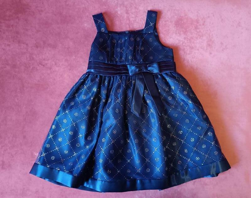 Платье украшено маленькими блесточками, очень красиво блестит. Сзади застегивается на молнию и пояс-бантик. Внизу есть подкладка и один слой фатина, платье держиткрасивую форму. В идеально состоянии, одевалось только 1 раз на фотосъемку. Размер 2T. Ориентируйтесь по замерам. длина 50 см, ширина по талии примерно - 27 см (с незатянутым пояском)