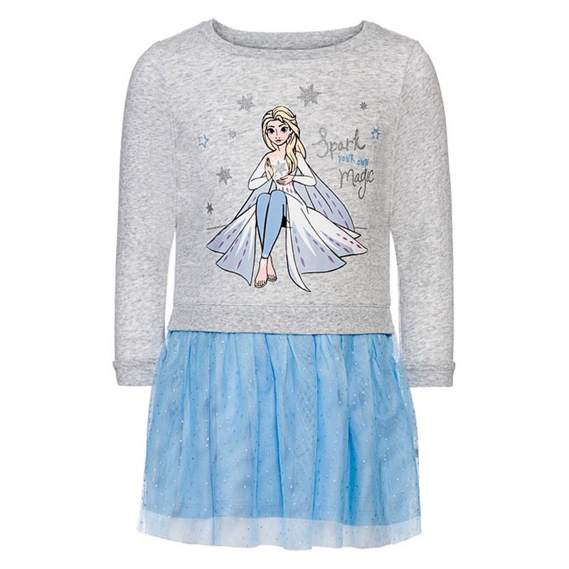 Дитяча трикотажна ошатна сукня на дівчинку. Сукня з довгими рукавами, світшотом із трикотажу (петелька) та розкльошеною спідницею з фатину. Disney 8-10 років - р.134-140: рукав від плеча 52, довжина 79, напівоб´єм грудей 39
