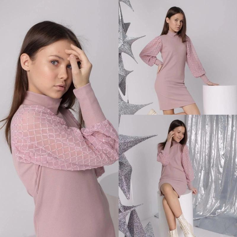 560 грн Теплое трикотажное платье для модниц ткань трикотаж рубчик на рукавах украшено пуговицами ткань очень хорошо тянется замеры\длина\длина рукава от плеча 146 рост-72\56 152 рост-76\57 158 рост-78\59 164 рост-79\60 146р-1шт 152р-1шт 158р-3шт 164р-3шт