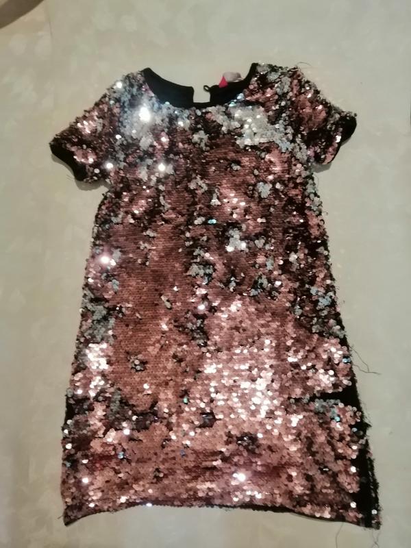 Гарна сукня з пайетками - перепертишами. Може бути рожевою та сріблястою. Потербує ремонту, на фото показала - збоку треба пришити пайєтки.
