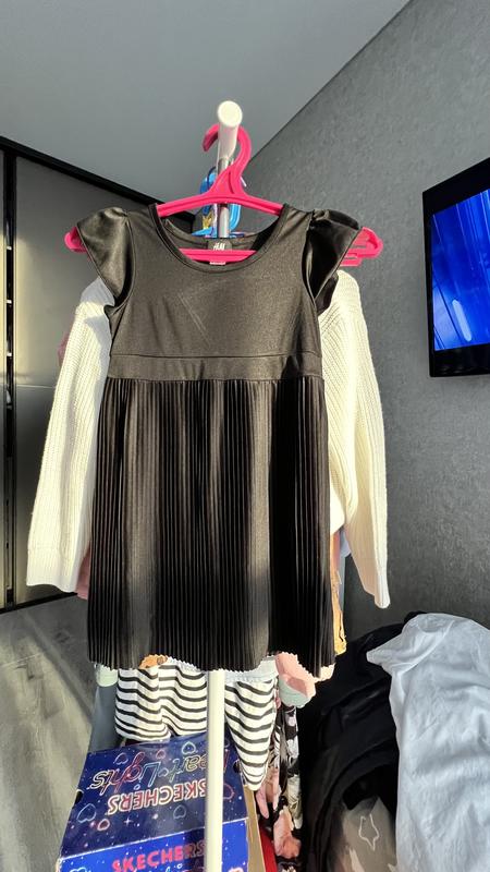 Дуже гарний сарафан, можна під гольф в школу. Низ з плісіровки, верх — тканина, як масло. На бірці зріст 134 — 140. Довжина 62 см, На пів обхват грудей — 31 сантиметр. Довжина де починається плісіровка -40 сантиметрів