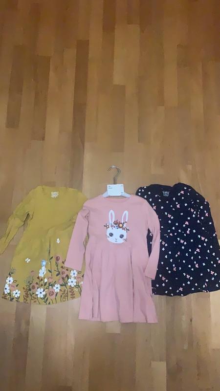 Платья для девочки в идеальном состоянии, одеты по несколько раз, розовые - новое. На бирке 110, но как по мне - маломерит, носили ровно в 4, зависит от ребёнка, очень красивые аппликации, после стирки не трескаются, 100% хлопок. Цена за одно, розовое - 200 грн. За все - торг. Заміри синього та гірчичного: Довжина - 52 см Ширина під руками - 29,5 см Ширина в талії - 31 см Рукав від плеча - 26 см