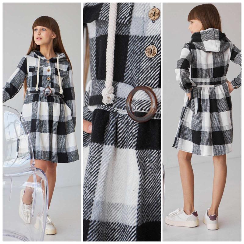 Стильне плаття для дівчаток модель спортивна класика, с капюшоном на шнуровках та поясочком в комплекті Тканина кашемір, тепла та приємна на дотик. заміри: Довжина \ Довжина рукава від плеча \ пог 128-63/43/32 134-65/45/34 140-69/47/35 146-72/49/35 152-74/52/36 артmasya