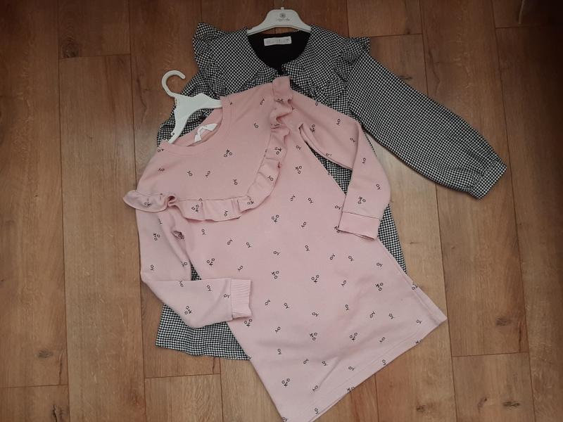 Платтячко від hm для дівчинки віком 5-6 років,по бірці на ріст 122/128. Заміри Ширина плеч /приспущені/ від рюшки до рюшки - 36 Рукав від шва , де рюша - 43 см Пог-35,5 см Довжина - 67 см Стан чудовий, без дефектів.