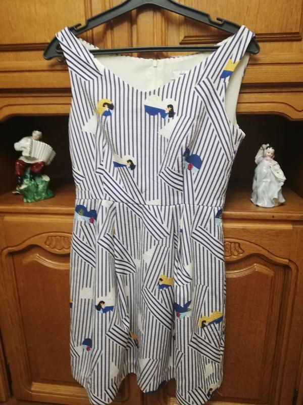 Гарне літнє плаття для маленької панянки. Плаття на підкладці, на спинці- застібка- молнія. Річ дуже якісна з американської посилки. Матеріал-. поліестр(м'який, приємний на дотик) Розмір eu xs us. xxs Зріст - 155 Заміри Пог 42 Пот. 35 Довжина до талії. 34 спідниця. 49 Загальна довжина. 83 Спідниця в складку.