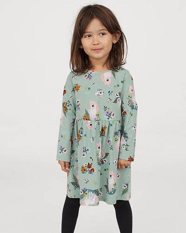 Дівчача сукня від H&M (після моєі доньки в ідеальному стані) Сукня з довгим рукавом із м'якого бавовняного трикотажу з набивним малюнком, круглий виріз горловини. Вік 4-6 роки Ріст 110-116 см Заміри: довжина 59 см рукав від плеча 42 см ПОГ 32 см