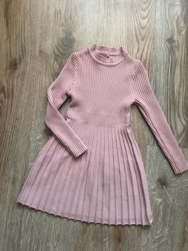 Тепле платтячко у ніжно-рожевому кольорі,верх рубчик,низ імітація плісе ,добре тягнеться,рукавчик можна підгорнути до потрібної довжини. На етикетці розмір 110,підійде на вік 3-5 р,заміри на фото. Стан ідеальний