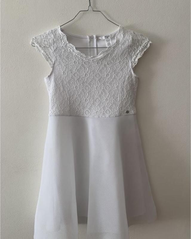 Біла сукня в сіточку з мереживом для дівчинки на ріст 140-146. Стан дуже хороший, ношена всього кілька разів. Легка тканина. Додаткових фото не роблю.