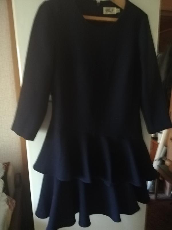 Фірмова темно- синя сукня з американської посилки для підлітка Розмір 46 Пог 48 Довжина 85 Довжина рукава 43 Пот43 Стегна будь- які Сукня на підкладці. Спідниця- два поверхи воланів вшиті навкіс від талії до лінії стегон. Довга блискавка по спинці. Дуже гарне. Для вишуканої панянки.