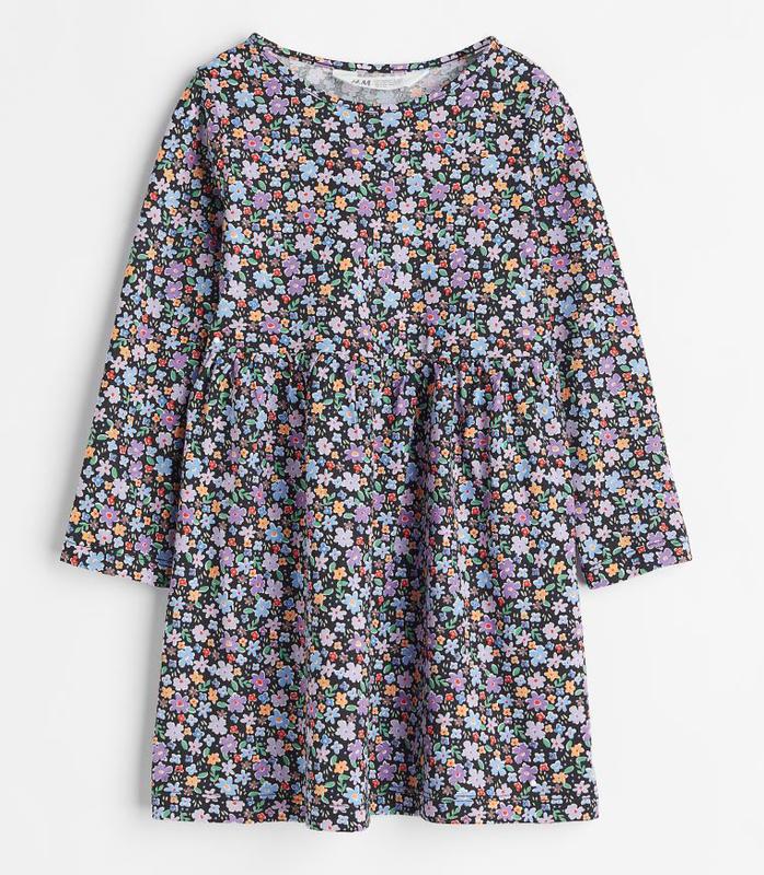 Дитяча трикотажна сукня на дівчинку. Сукня з довгим рукавом із м´якого бавовняного трикотажу з тематичним малюнком. Круглий виріз горловини, сукня відрізна по складання на талії, з пишною розклешеною спідницею. H&M. 2-4 роки - р.98/104: рукав від плеча 34, довжина 55, ПОГ 29 4-6 років - р.110/116: рукав від плеча 41, довжина 61, ПОГ 31 6-8 років - р.122/128: рукав від плеча 47, довжина 68, ПОГ 32 8-10 років - р.134/140: рукав від плеча 52, довжина 75, ПОГ 35
